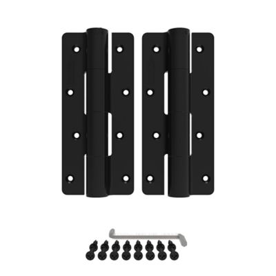 Gate hinge kit includes upper and lower hinges and mounting hardware.